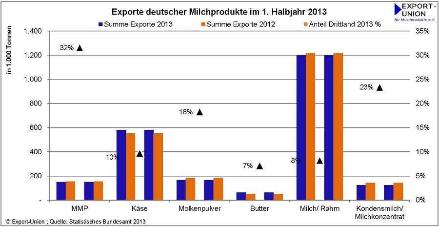 Die deutsche Milchwirtschaft treibt ihre Bemühungen um neue Märkte weiter voran und konnte trotz einzelner Schwierigkeiten beim Eintritt in neue Märkte das gute Vorjahresergebnis wiederholen. Letztlich wird das Rohstoffaufkommen in Deutschland in der zweiten Jahreshälfte darüber mitentscheiden, ob erneut ein Rekordergebnis bei der Ausfuhr von deutscher Milch und Milchprodukten möglich ist.