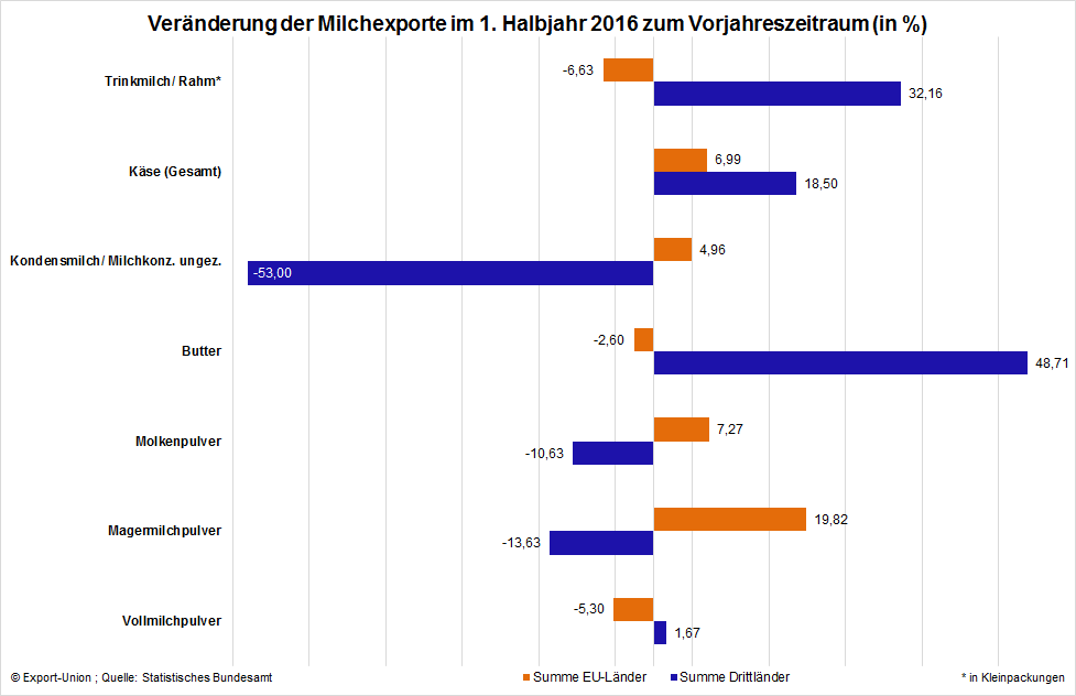 Halbjahreszahlen deutscher Milchexporte 2016